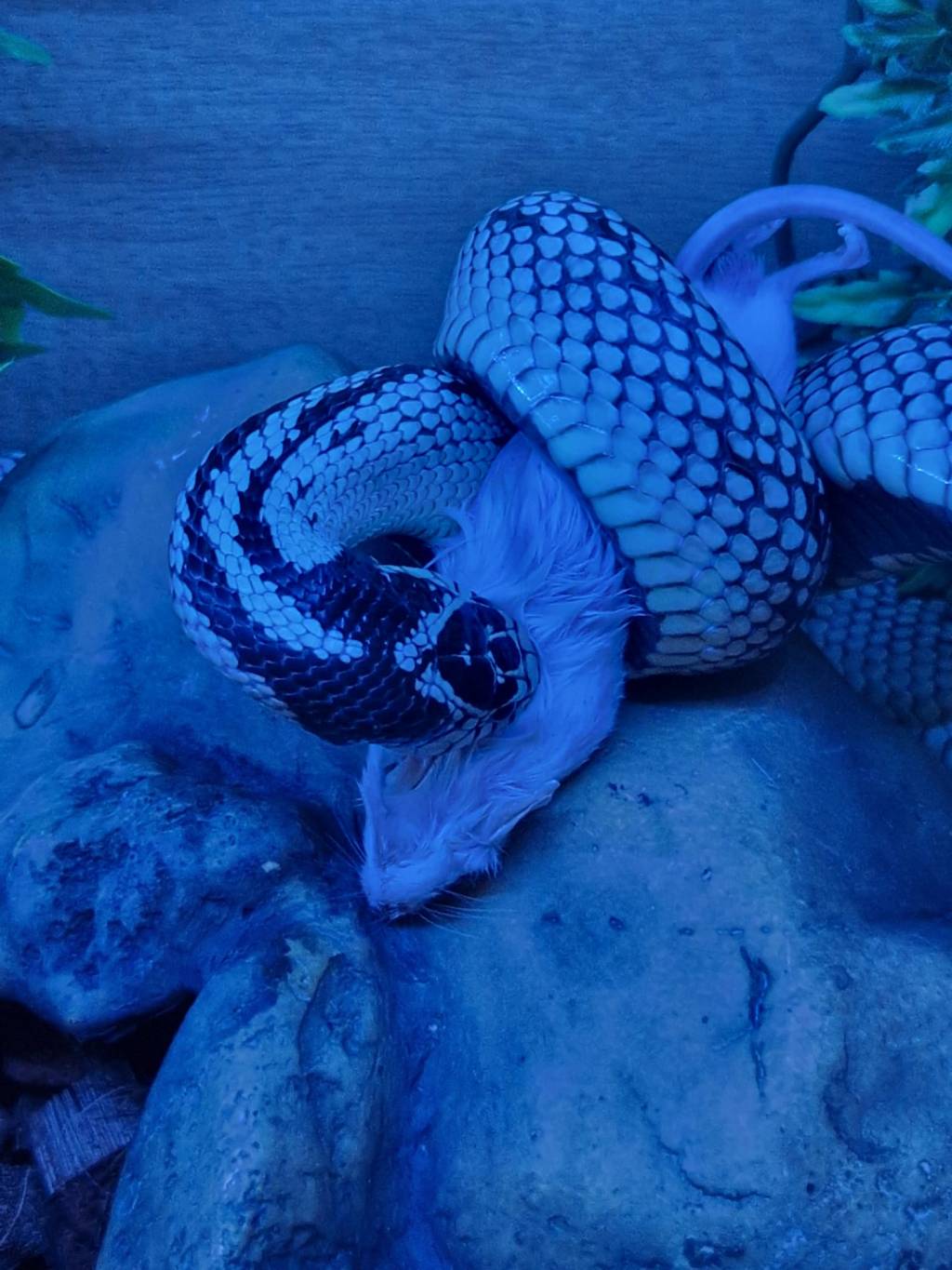 After his housing glow up and being here for a week it was time for King Louie’s first feed attempt with us……..typical King snake…..he didn’t disappoint. Success!