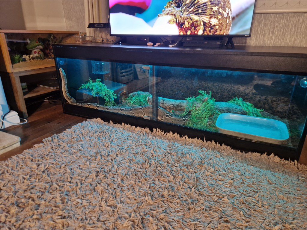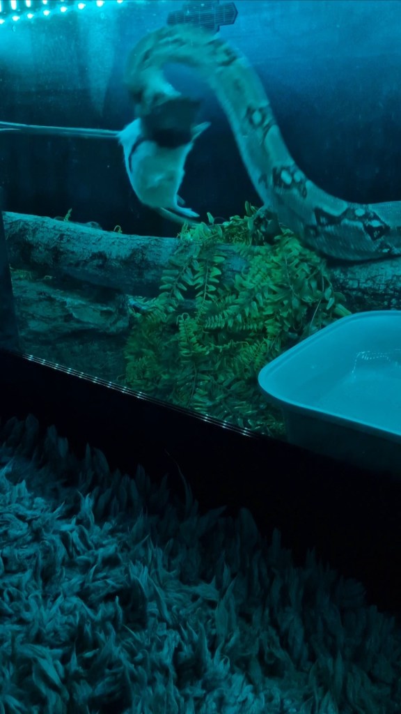 Meet Hercules- a 7ft Boa Imperator who has been given up by a previous owner. We’ve had him for nearly 2 weeks now and he’s settled in well so tonight was time to try him on a small meal for the first time with us. No problem- bigger meal next time, though at over 450g it wasn’t exactly a small rat.