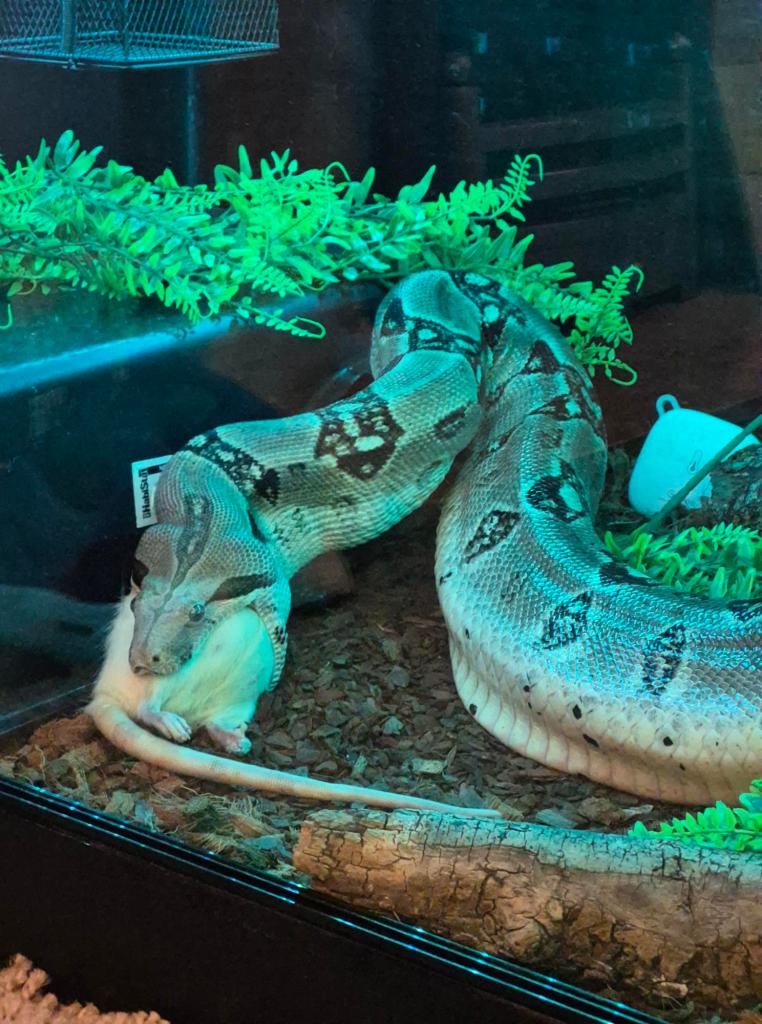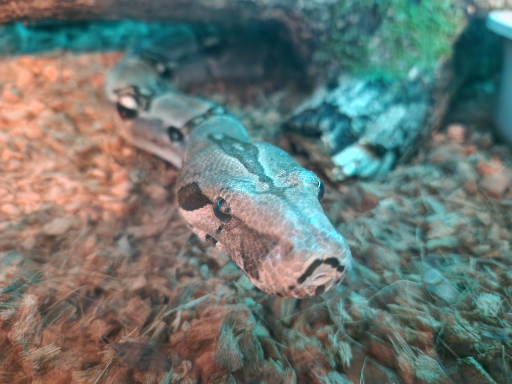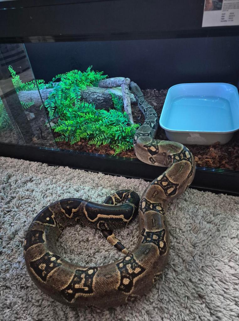 | Hercules is a male boa imperator who’s age is unknown but suspected to be approx 6 years old. There are 8 subspecies of boa found throughout Central and South America. The two most common being boa constrictor constrictor (BCC) and boa constrictor imperator (BCI). Boas are medium/large typically heavy bodied snakes but despite their size are good climbers and often found in semi arboreal conditions. Depending on the subspecies boas can vary anything from 5’ (150cm) up to 12’ (360cm) and Hercules is a good size at just about 7 1/2 ft and just shy of 10 kgs in weight- considerably larger than Kuzco who is the same species. BCI’s are often known as common boas or central American boa’s due to their range in the wild being central America and west of the south American Andes. They are also considered to be the most docile of the subspecies and the most commonly kept. | |||